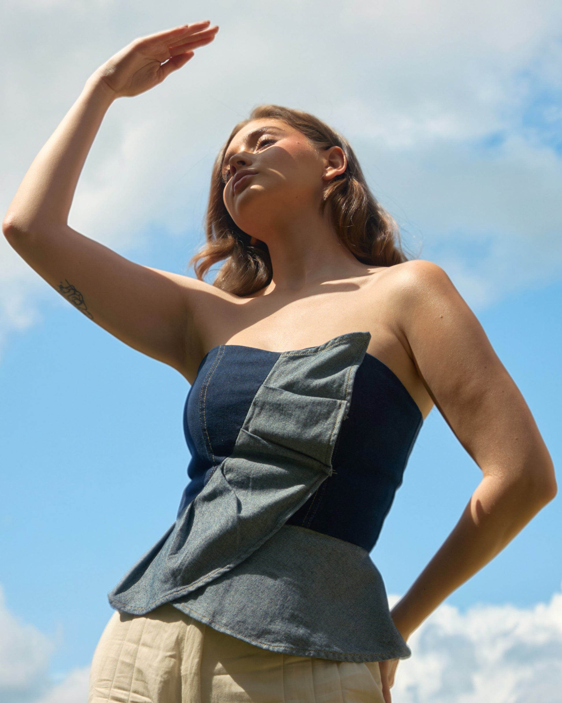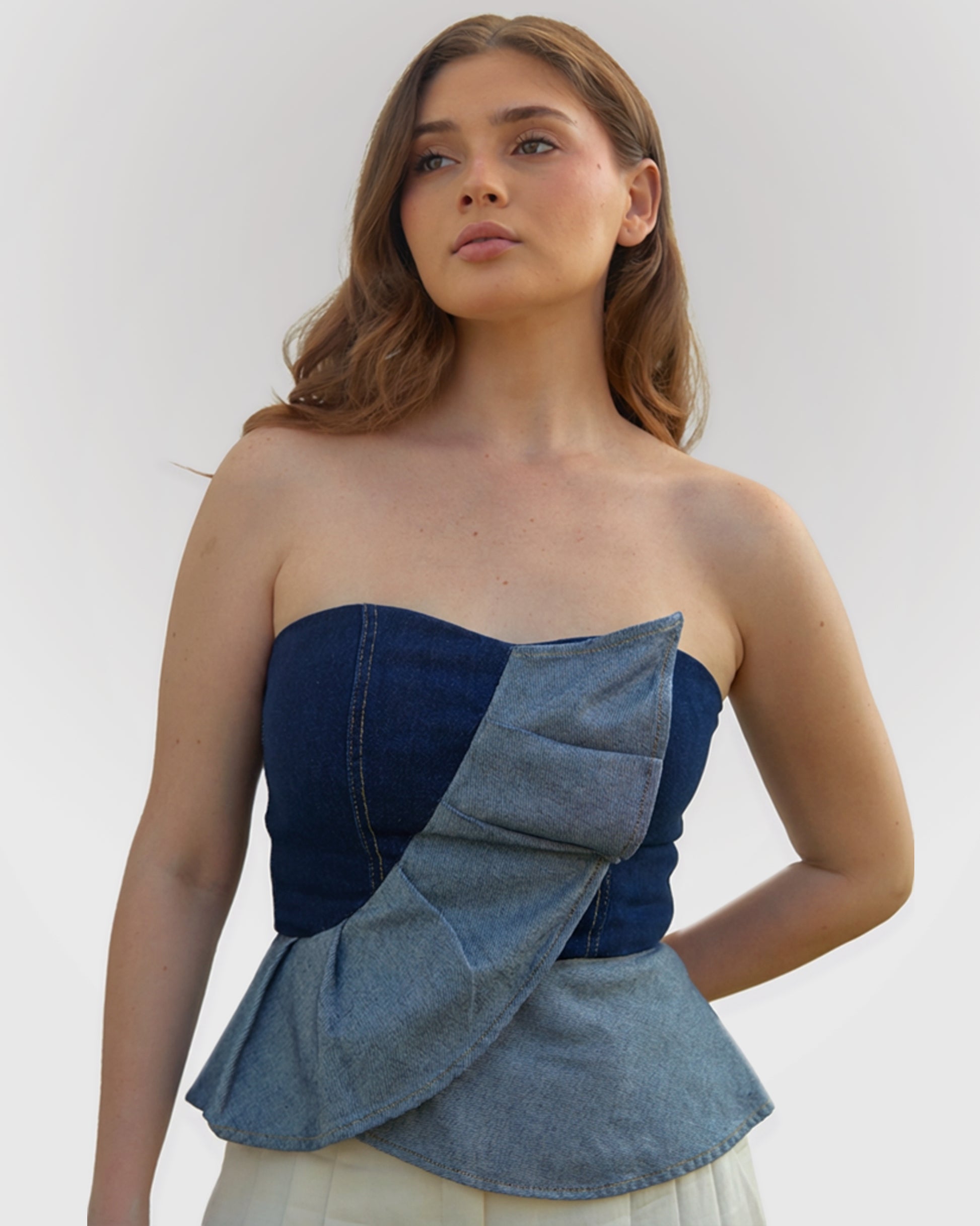 Top en denim, silueta ajustada, cómodo libre e ideal para cualquier ocasión.